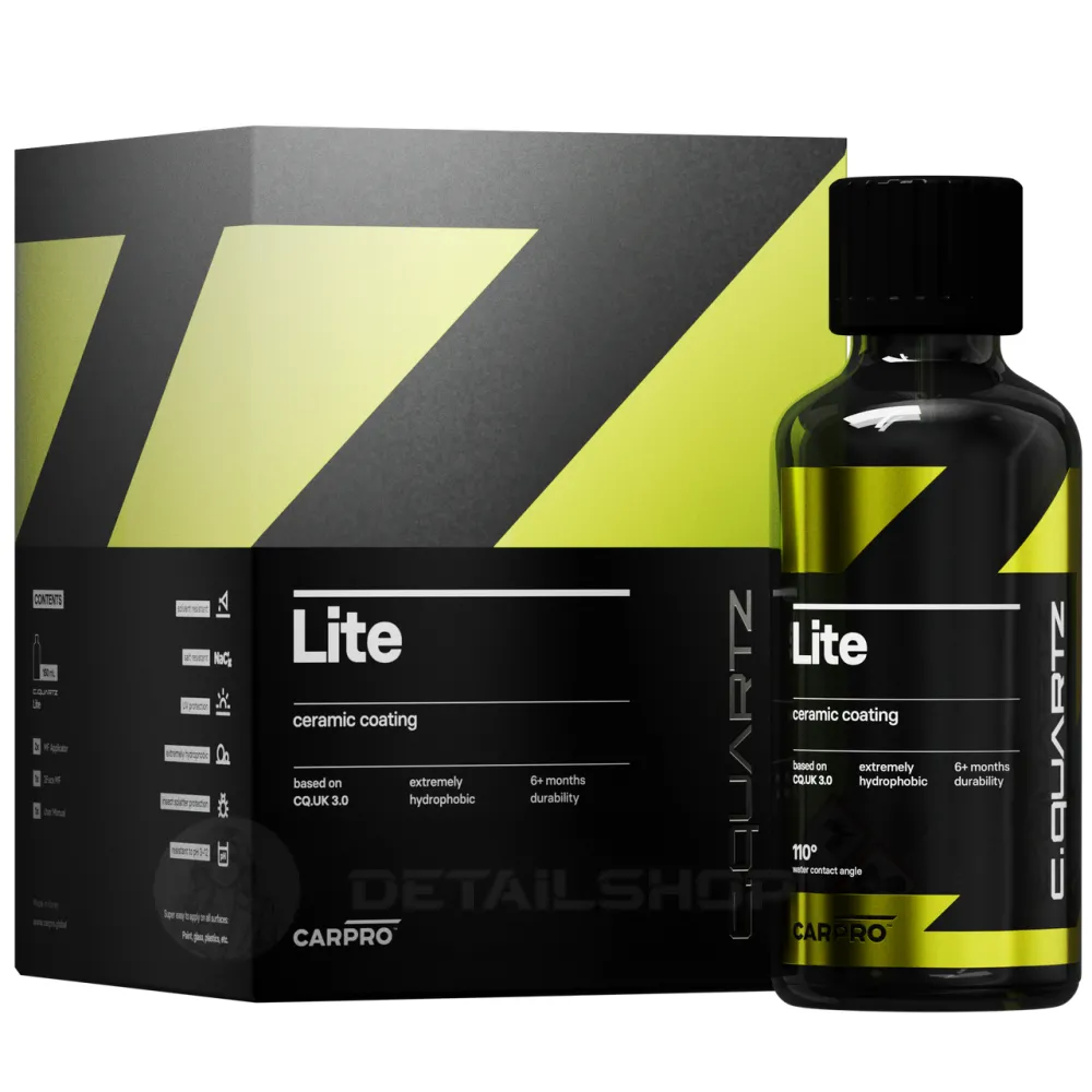 CARPRO CQuartz Lite – удобное и простое в нанесении керамическое покрытие. «Lite» основан на удивительной технологии керамического покрытия CARPRO CQuartz UK, которая стала известной во всем мире. CQuartz Lite может наноситься как самостоятельное керамическое покрытие, долговечность которого составляет более 12 месяцев, либо в качестве усиления существующих покрытий CQuartz.